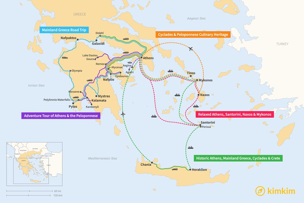 我们整理了一些经典的希腊旅行路线,例如雅典、圣托里尼、米科诺斯等热门目的地,帮助你了解不同岛屿之间的旅行方式与行程安排。